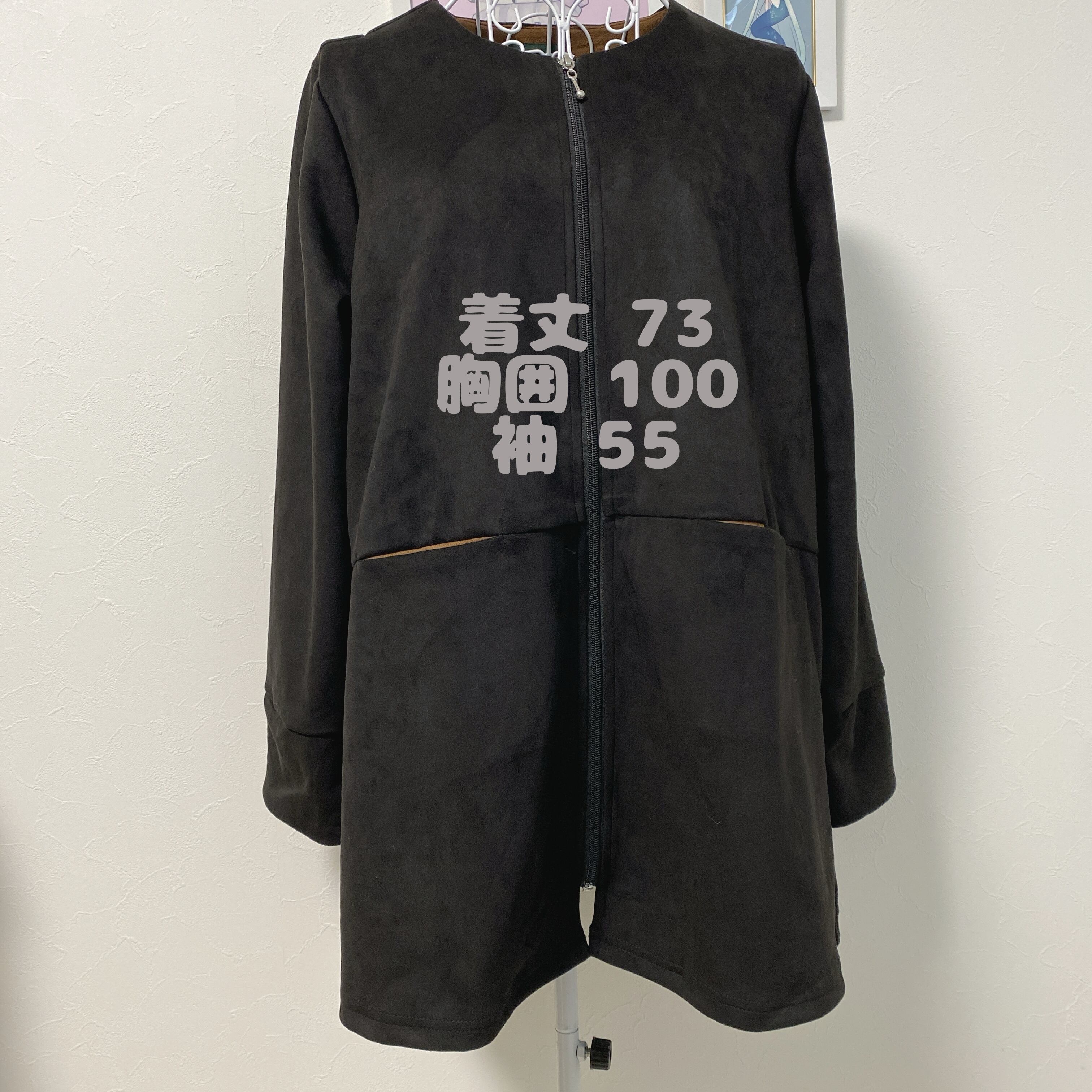 シンプルなスタイルに最適なベロア調ノーカラーコートです♡